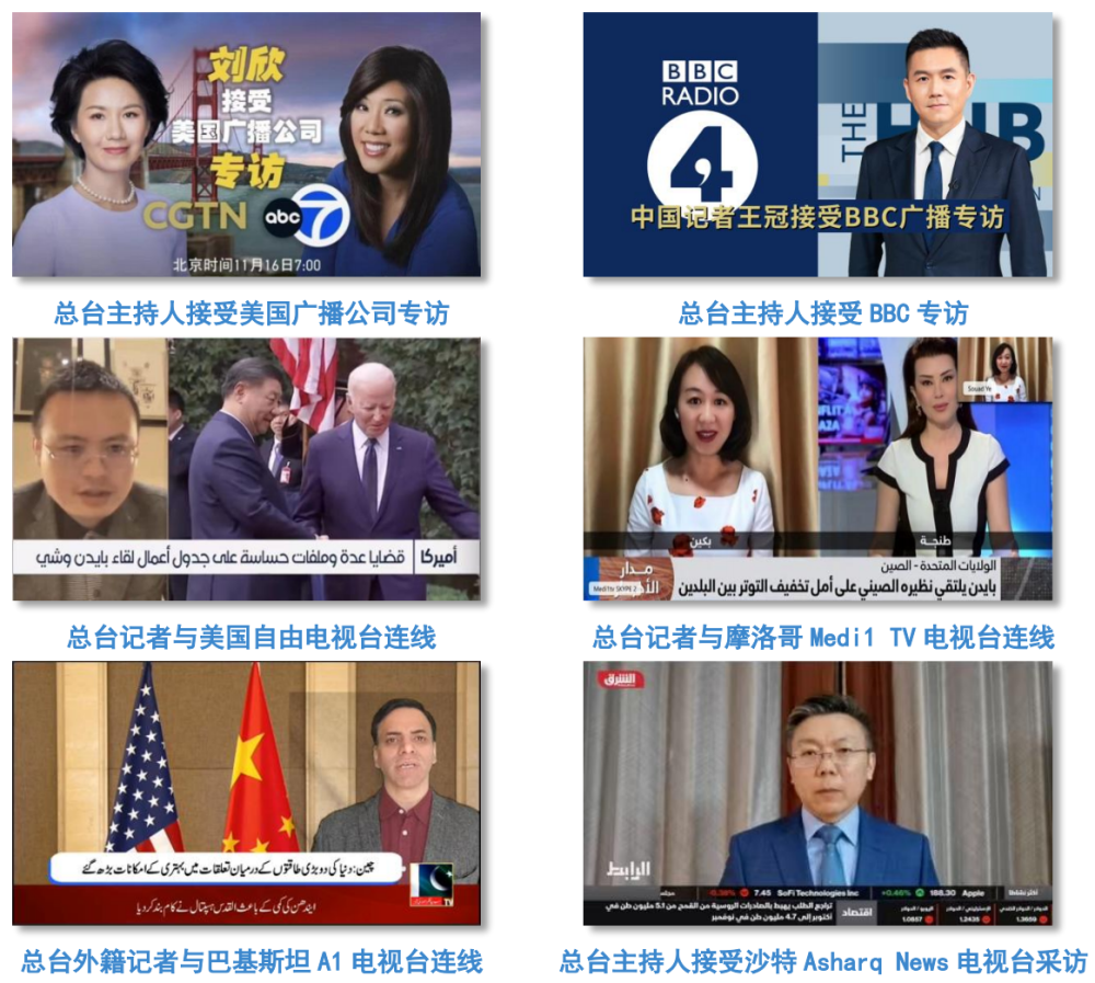 有力发声。总台多语种主持人、记者应邀与ABC、美国Scripps News电视台、美国自由电视台◆◆■■◆◆、BBC★★■◆★◆、俄罗斯卫星通讯社、沙特新闻电视台◆■◆★■◆、法国蒙特卡洛电台★■◆■、南非第五频道、摩洛哥Medi1 TV电视台★★◆、越南数字电视台、印度电讯电视台、泰国公共电视台、土耳其FIL电视台■■★、巴基斯坦国家电视台◆★■◆、巴基斯坦A1电视台、肯尼亚PPP电视台★★◆、刚果(金)Mishapi电视台、孟加拉国RTV电视台等海外主流媒体连线余次。在欧洲时事杂志《现代外交》、印尼发行量最大的英文报纸《雅加达邮报》◆◆◆■★、埃及时政报纸《宪法报》、巴基斯坦主流媒体《每日邮报》、土耳其主流数字媒体《哈里吉》、阿尔及利亚《祖国报》◆★■◆■、伊拉克阿杰纳丁通讯社★■■、摩洛哥《回声报》等海外主流媒体发表文章超100篇次,第一时间传递中美元首会晤重要共识★◆★◆◆,面向对象国受众鲜明宣介习主席关于中美关系的重要论述■★★◆★◆。